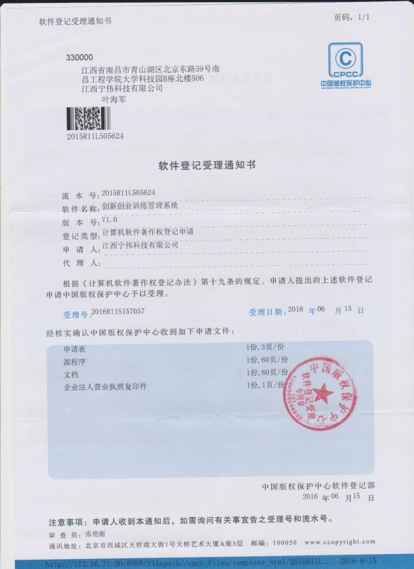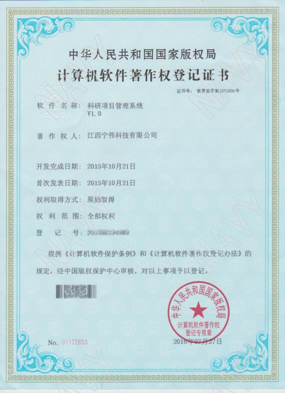 計(jì)算(suàn)機(jī)軟件(jiàn)著作(zu≤"↔₽ò)權登記證書(shū)登記号:2016SR194162
